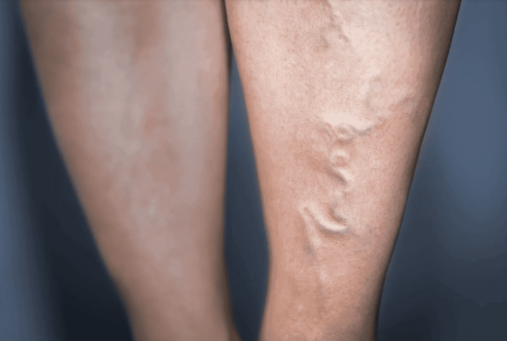 Varicose veins are the ropey, blue or purple veins that appear on your legs. They form when blood leaks backward through weakened sections of veins, getting trapped and pooling. When this happens, your veins swell and become visible on your skin.
